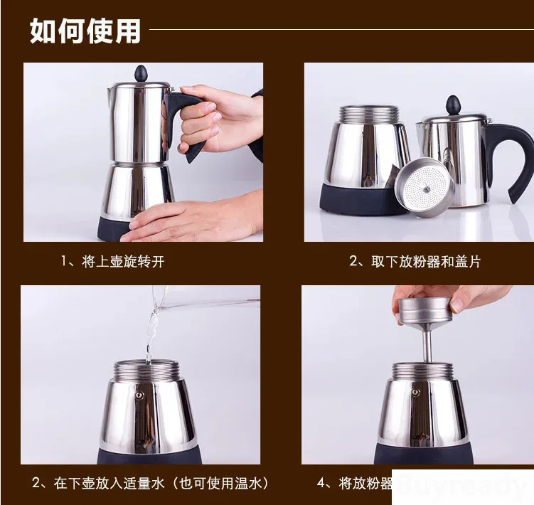 Before using the newly purchased Mocha pot, cook it with clean water at least three times to ensure the cleanliness of the pot!!