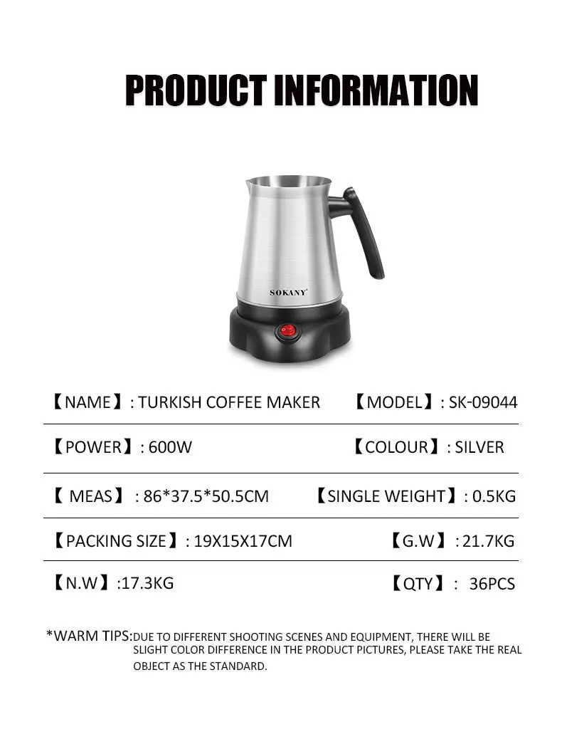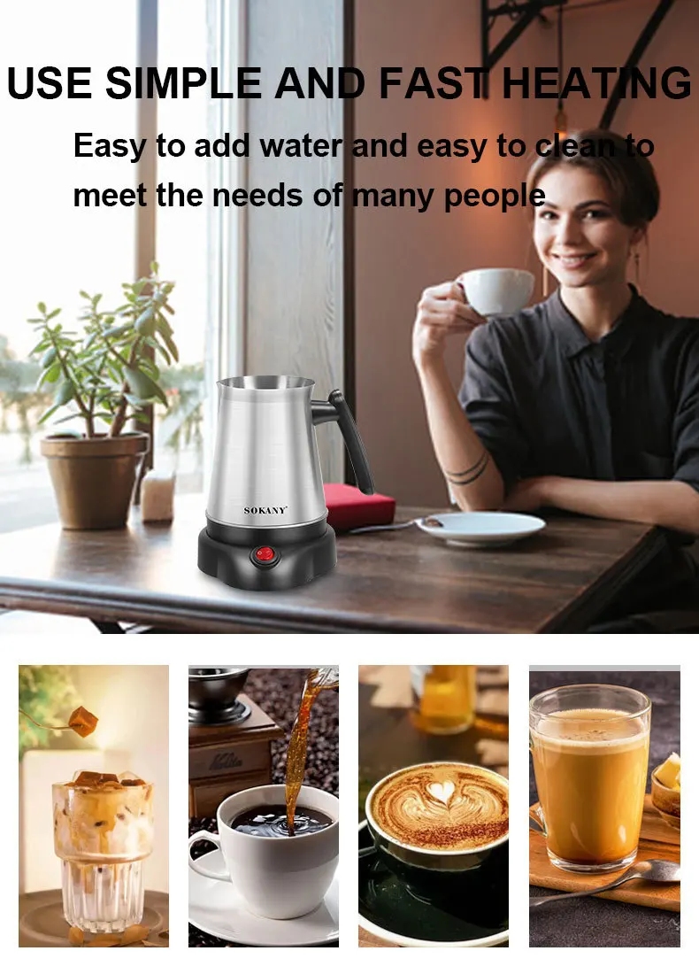 600W Turkish Electric Coffee Maker, 500ml Detached Italian Moka Pot, Stainless Steel Material, Arabic Portable Espresso Machine 1