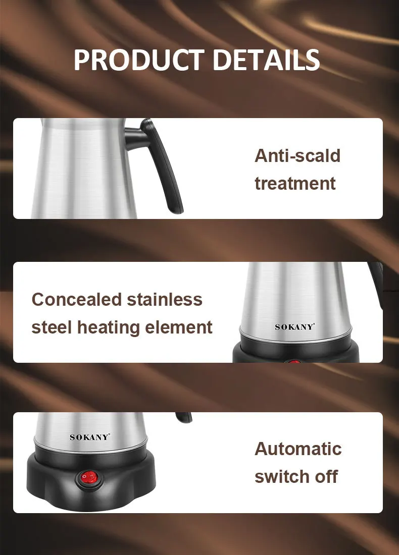 600W Turkish Electric Coffee Maker, 500ml Detached Italian Moka Pot, Stainless Steel Material, Arabic Portable Espresso Machine 3