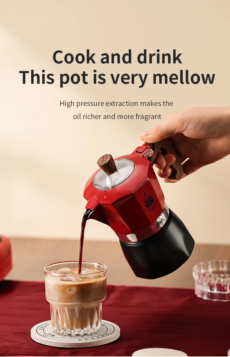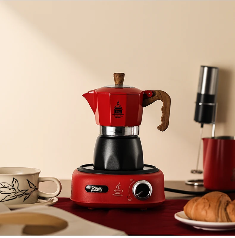 Bincoo Double Valve Mocha Pot Espresso Brewing Camping Portable Electric Stove Italian Design Aluminum Alloy 220V 4