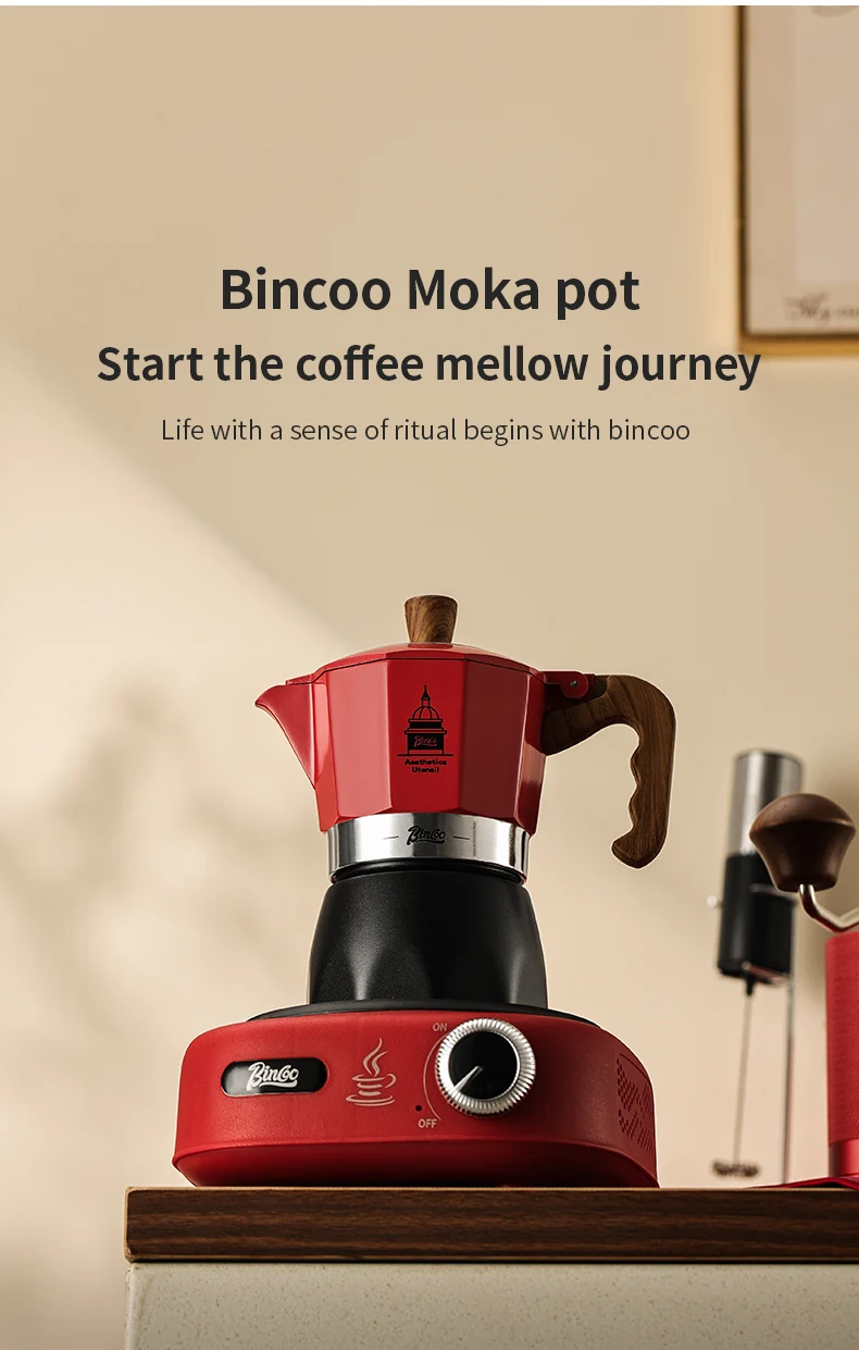 Bincoo Double Valve Mocha Pot Espresso Brewing Camping Portable Electric Stove Italian Design Aluminum Alloy 220V 1