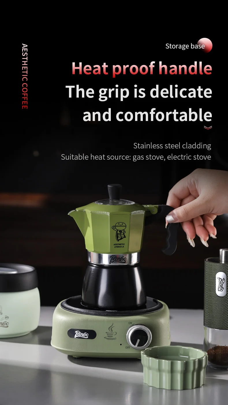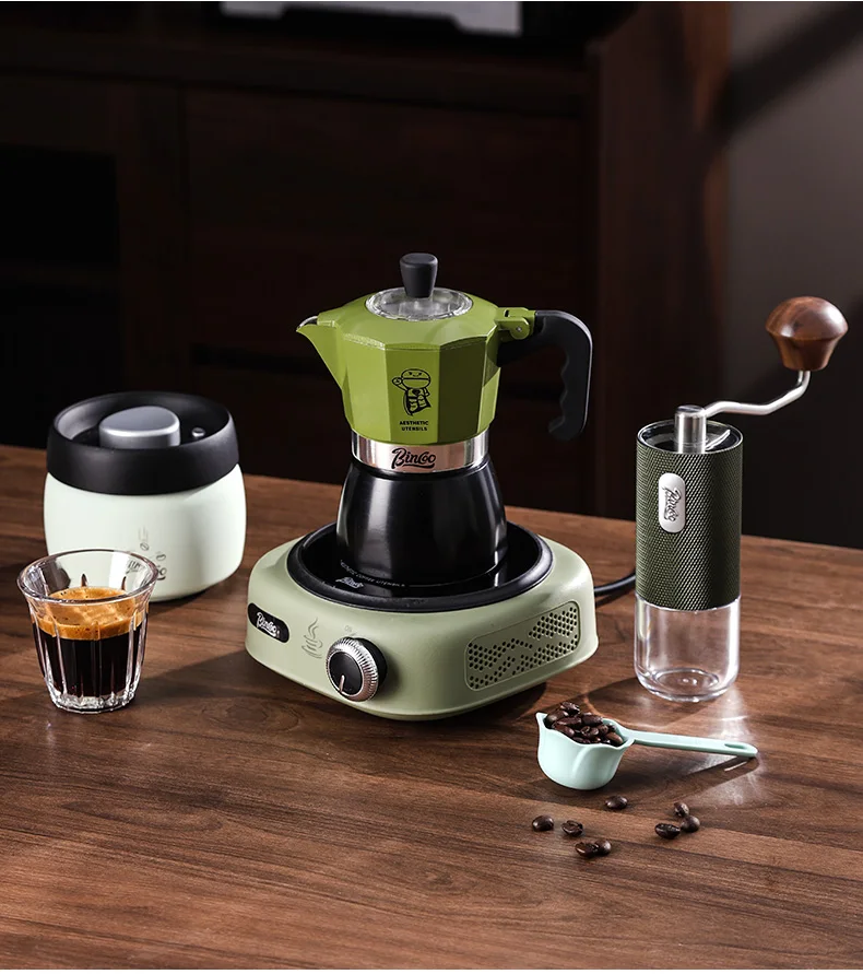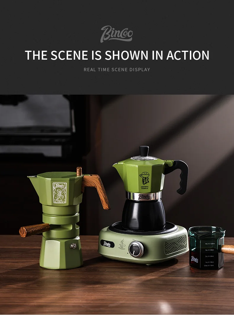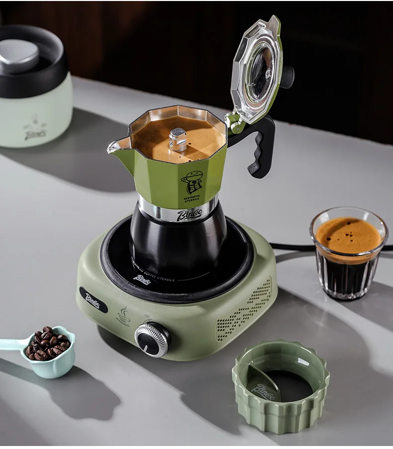 Bincoo Double valve Moka Pot Set Electric Stove Coffee Pot Household Italian Espresso Machine Mocha Pot Barista Accessories 220V 5