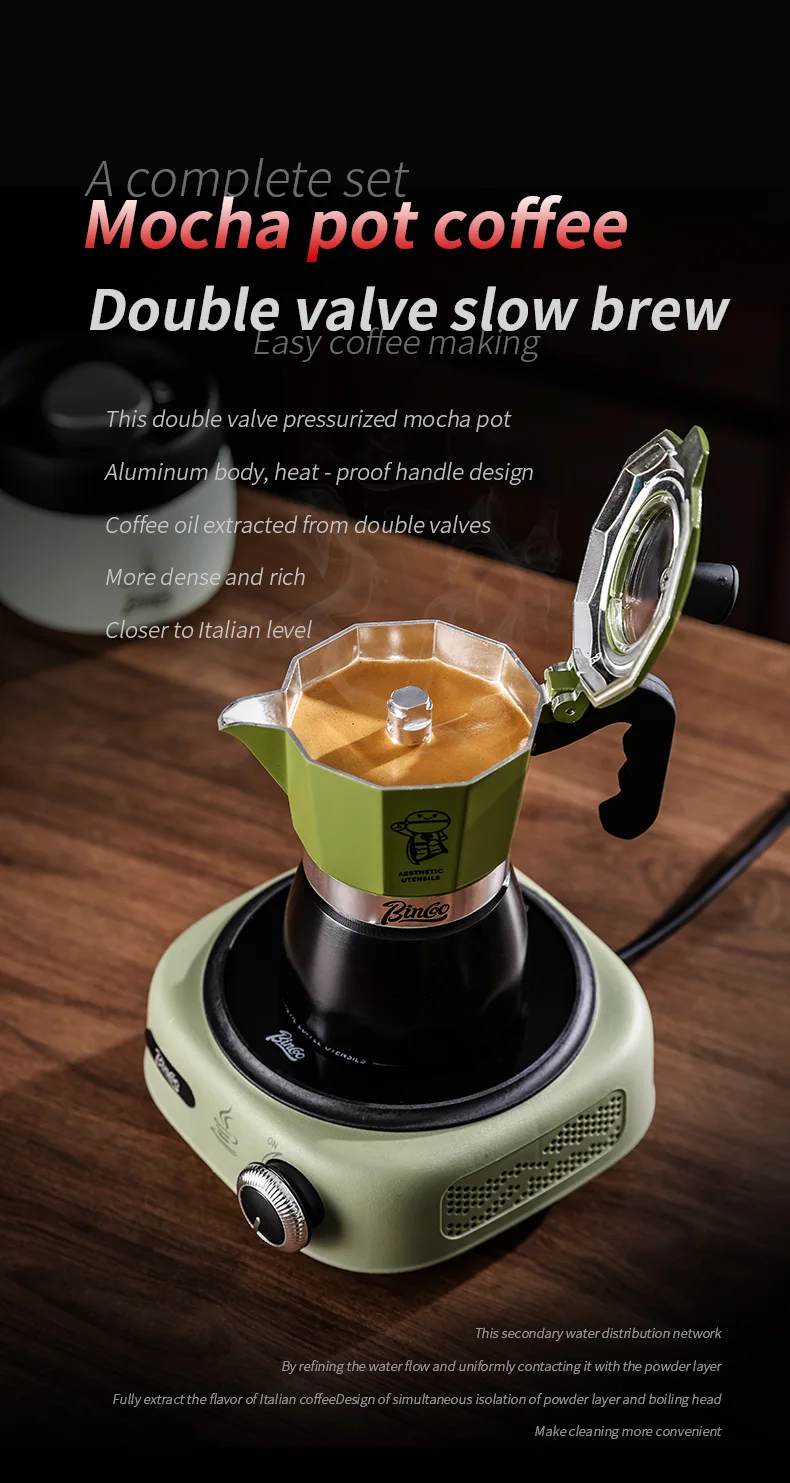 Bincoo Double valve Moka Pot Set Electric Stove Coffee Pot Household Italian Espresso Machine Mocha Pot Barista Accessories 220V