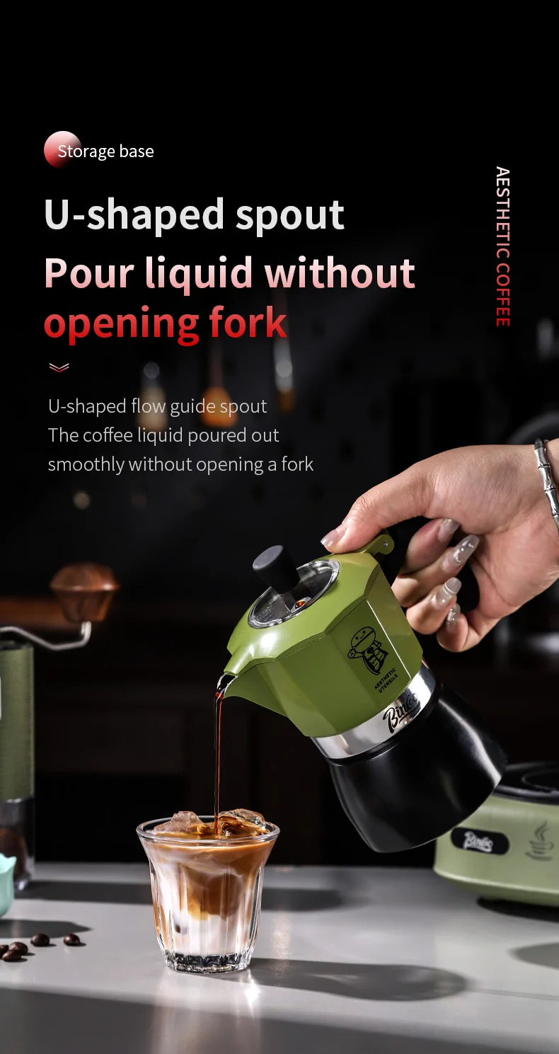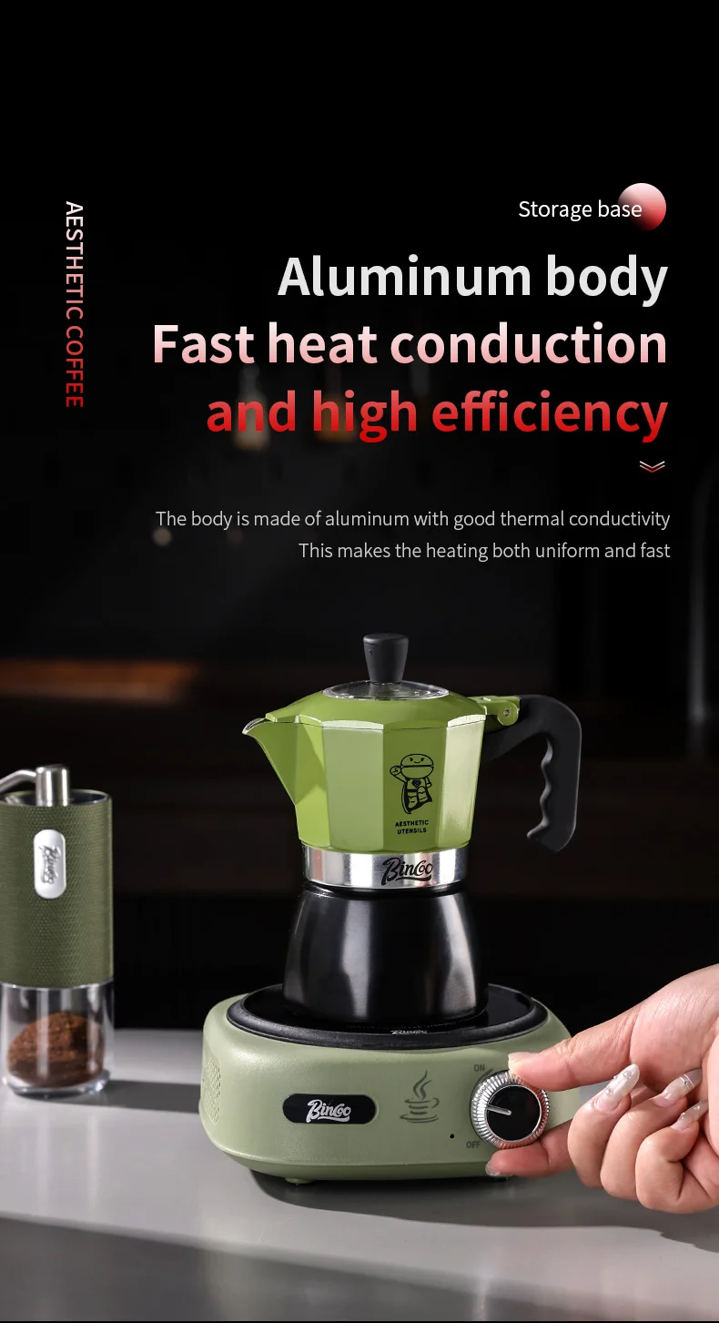 Bincoo Double valve Moka Pot Set Electric Stove Coffee Pot Household Italian Espresso Machine Mocha Pot Barista Accessories 220V 6