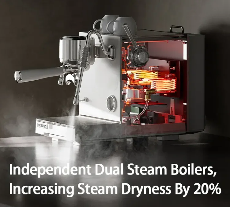 3. Independent dual steam boilers increase steam dryness by 20% for better milk frothing