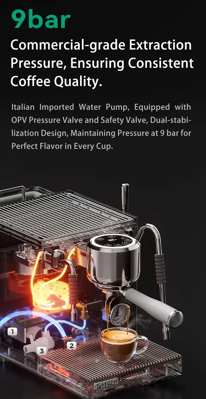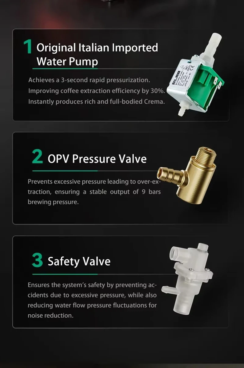 1. Italian imported pump with 3-second rapid pressurization for 30% higher extraction efficiency