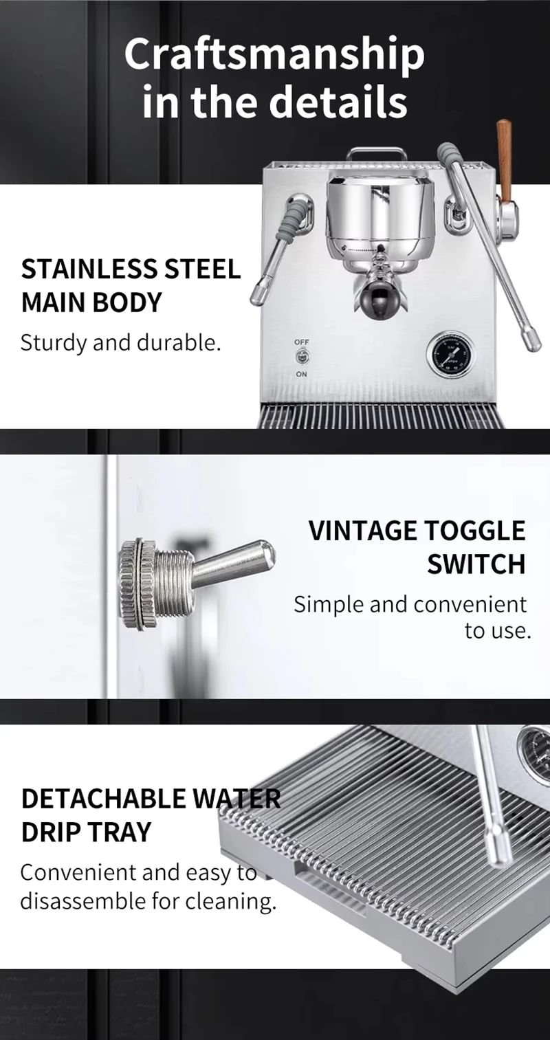 4. Commercial-grade 9bar extraction pressure ensures consistent coffee quality
