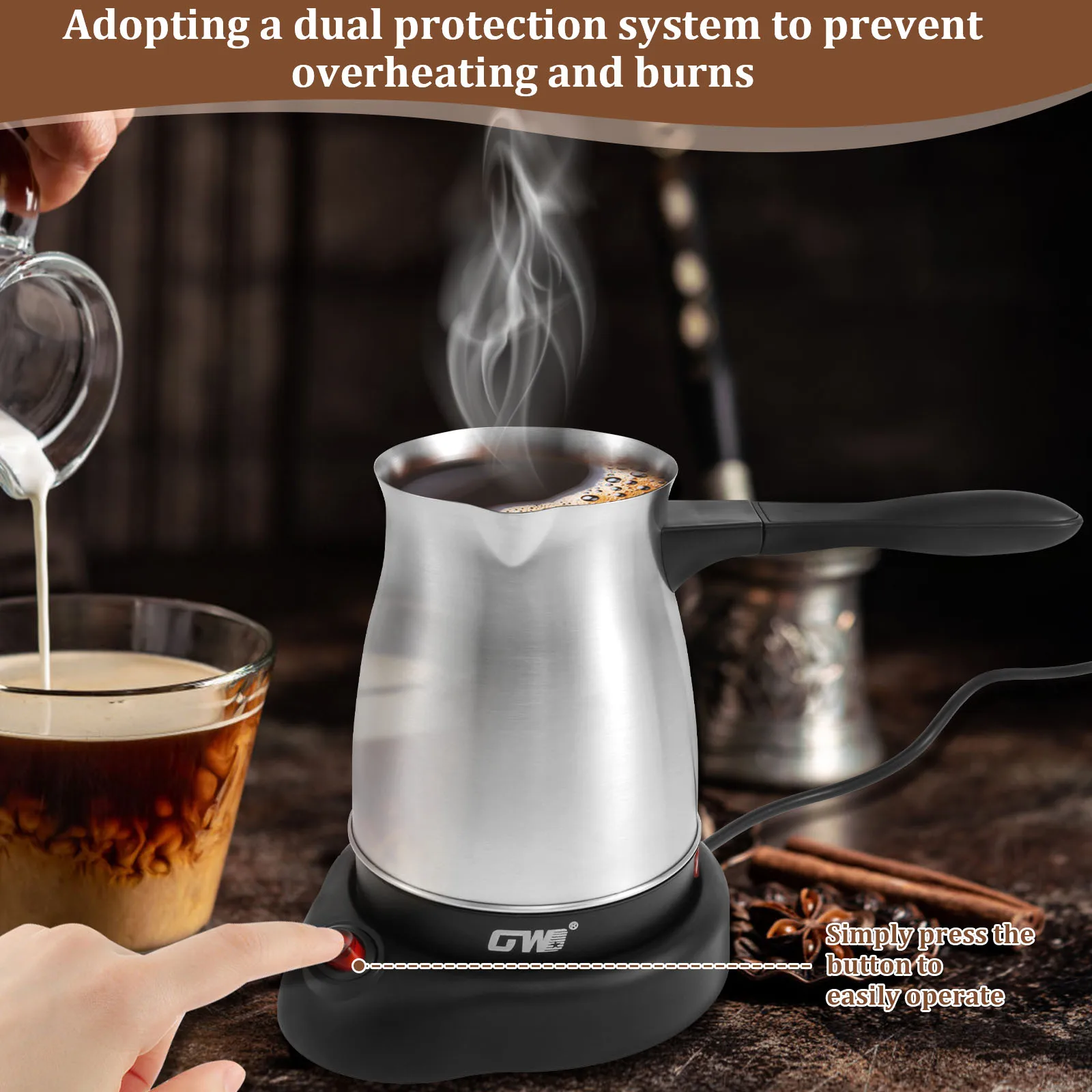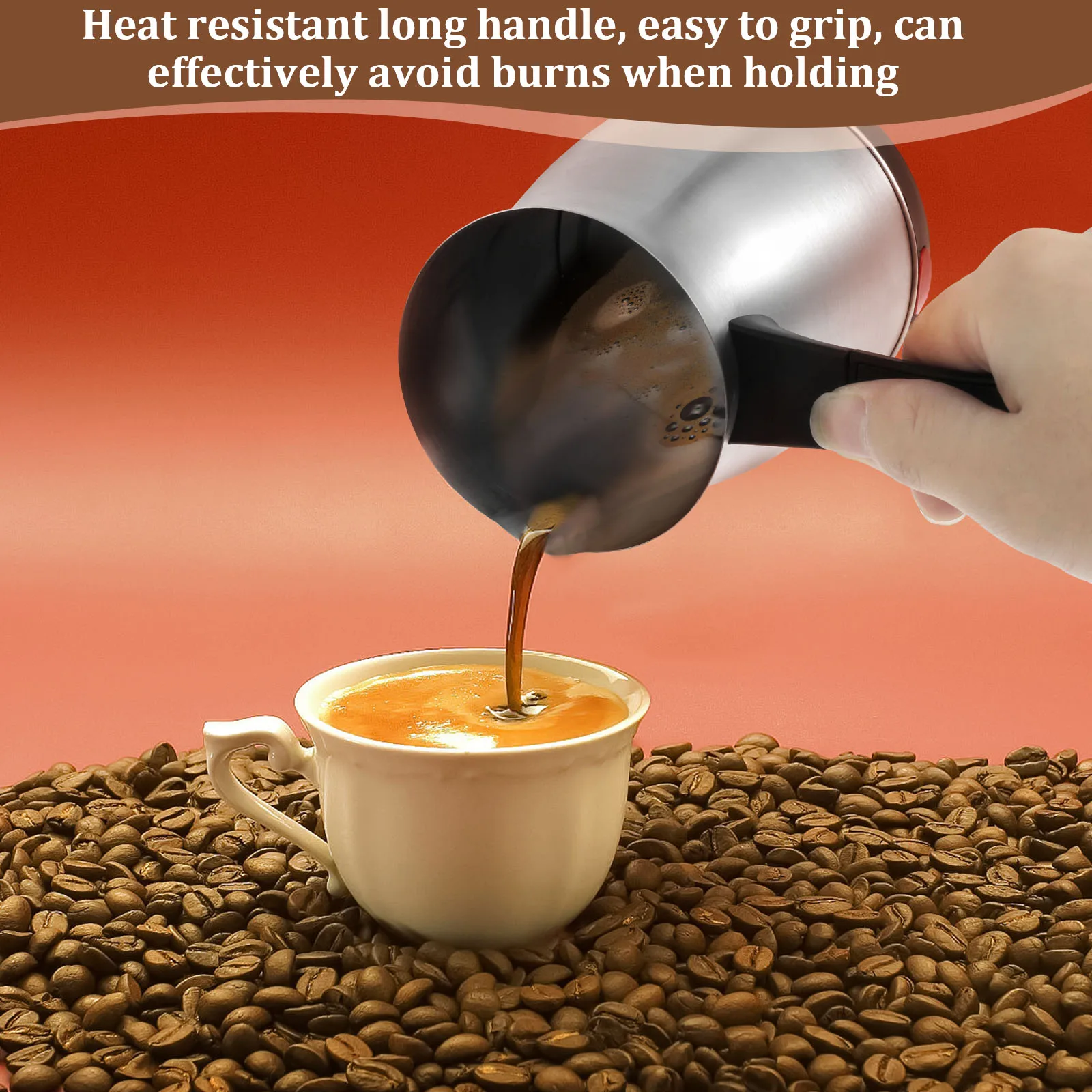 [Stainless Steel Material] This home electric heated coffee maker is made of food grade stainless steel, nontoxic, safe and enduring, which not only ensures durability, but also retains the essence and aroma of your favorite Turkish, Arabic or Greek coffee.