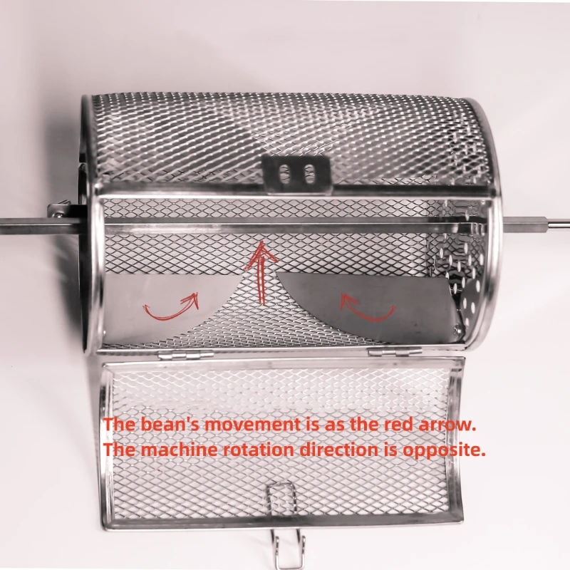It is better to use with coffee cooling machine after baking beans. We will also put a manual handle for the roaster, so it can also manual use.