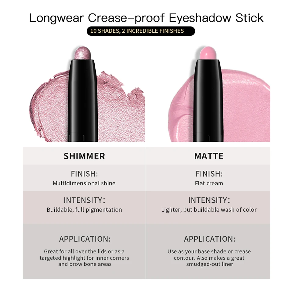 Eyeshadow Stick 10Colors Shimmer And Matte Brown Metallic Cream Eyeshadow Pencil Crayon with Smudge-proof & Waterproof Makeup