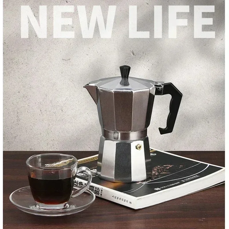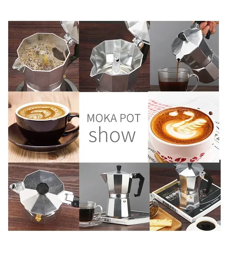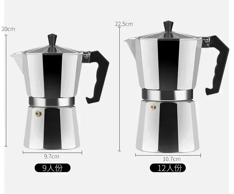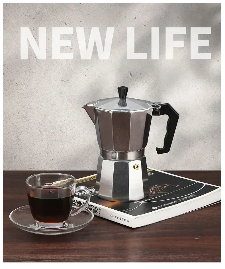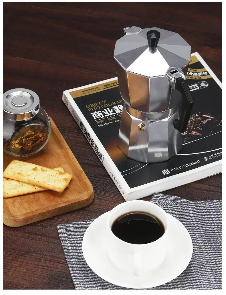 Fine Aluminum Moka Pot Household 50ml-600ml Coffee Maker Electric Burner Stove Top Espresso Percolator Coffee Extraction Pot 6