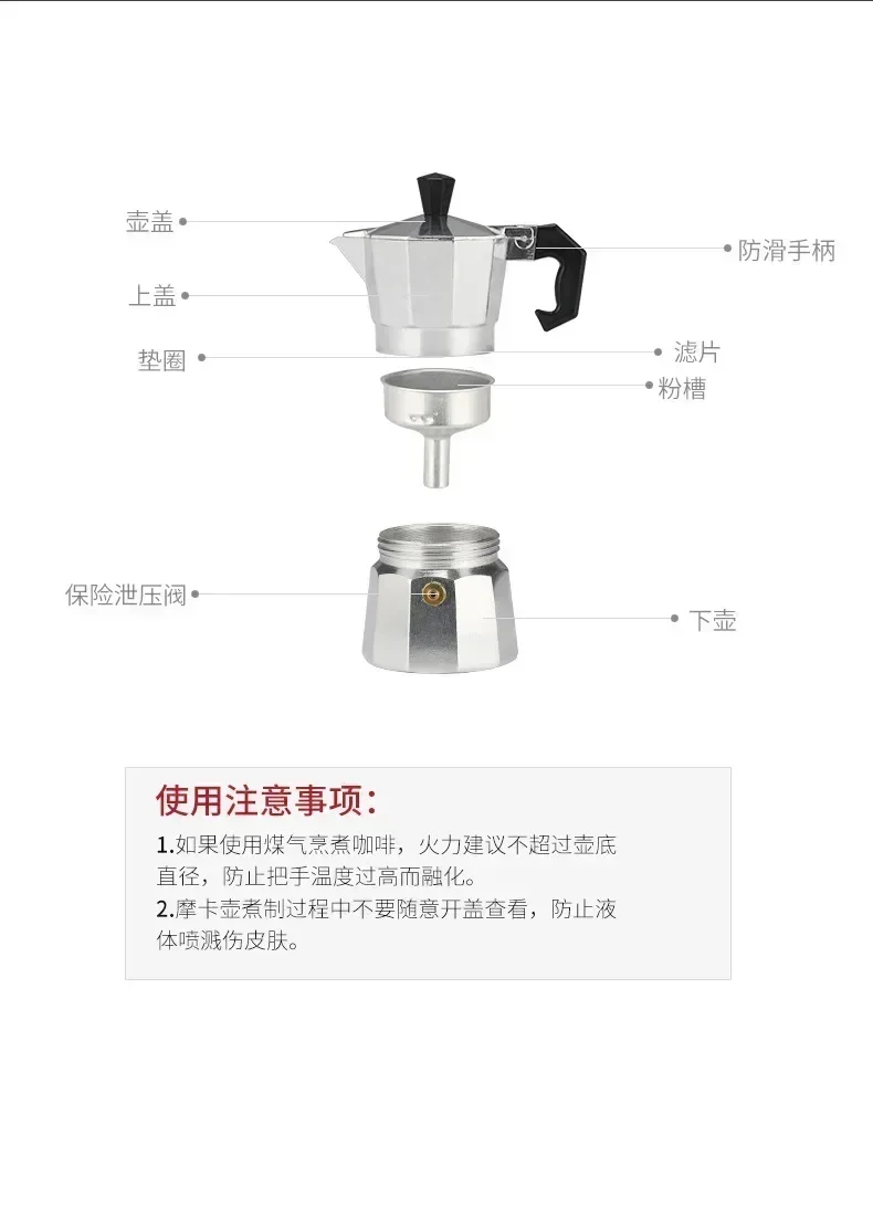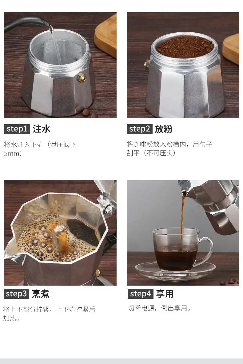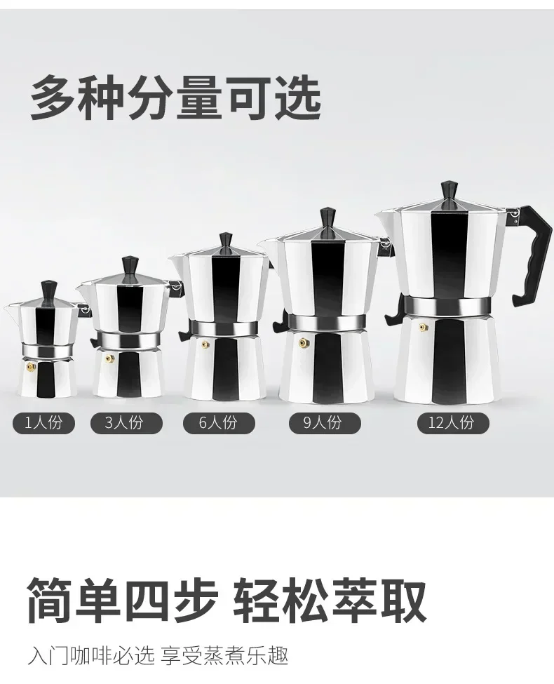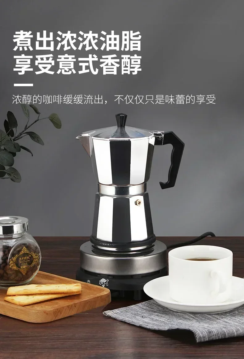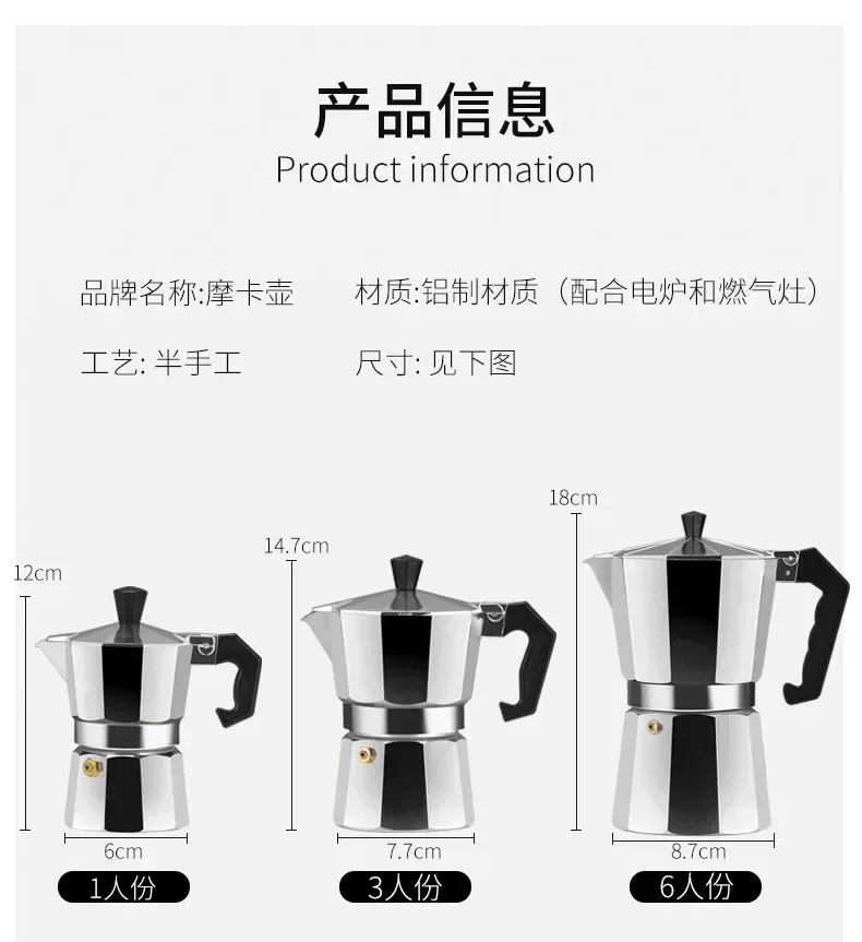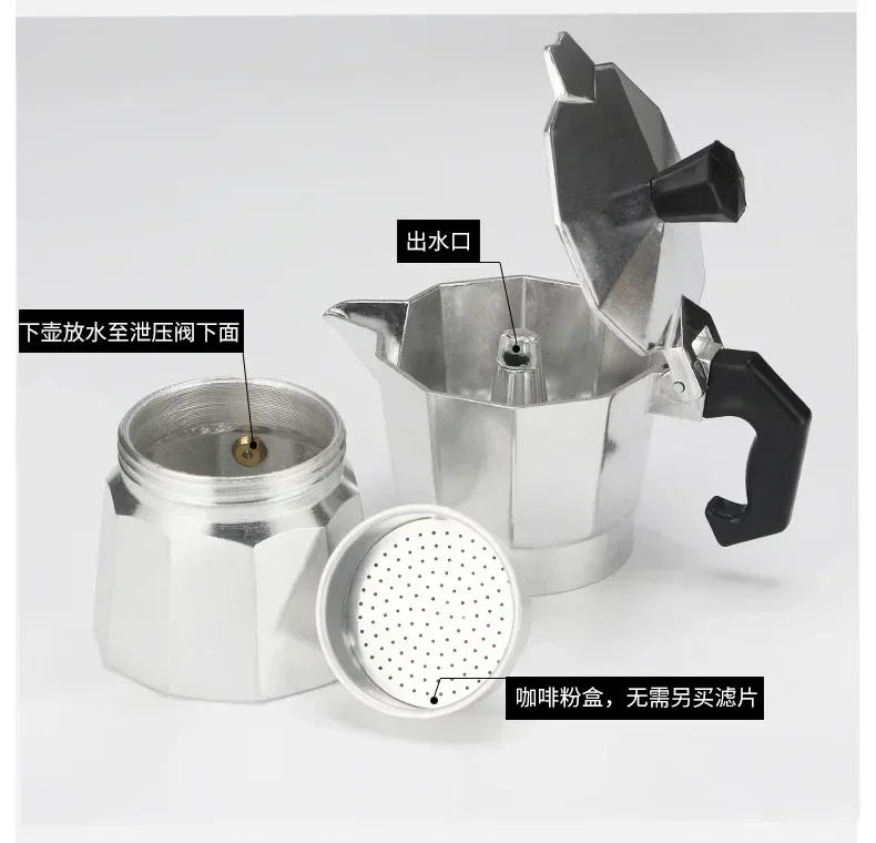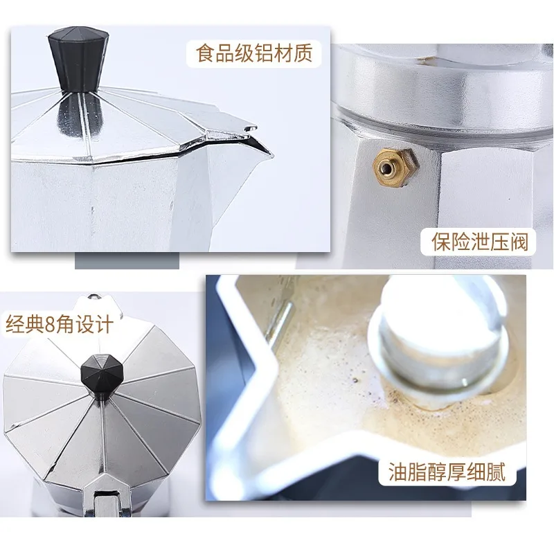 Fine Aluminum Moka Pot Household 50ml-600ml Coffee Maker Electric Burner Stove Top Espresso Percolator Coffee Extraction Pot 4