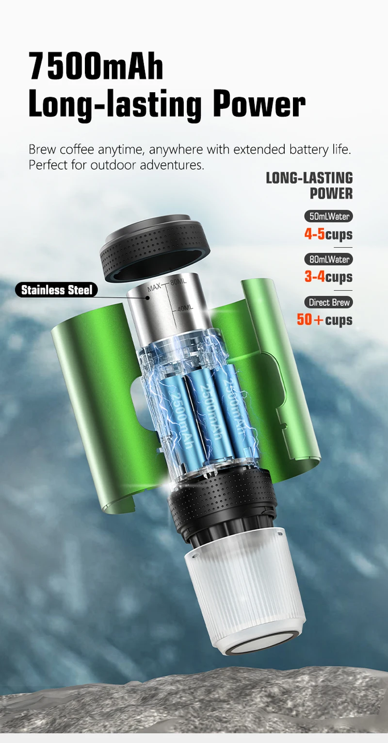 【Portable and Convenient】The portable espresso machine is suitable for many occasions, convenient and easy to carry, and can be brewed directly.Water can be heated directly for extraction.