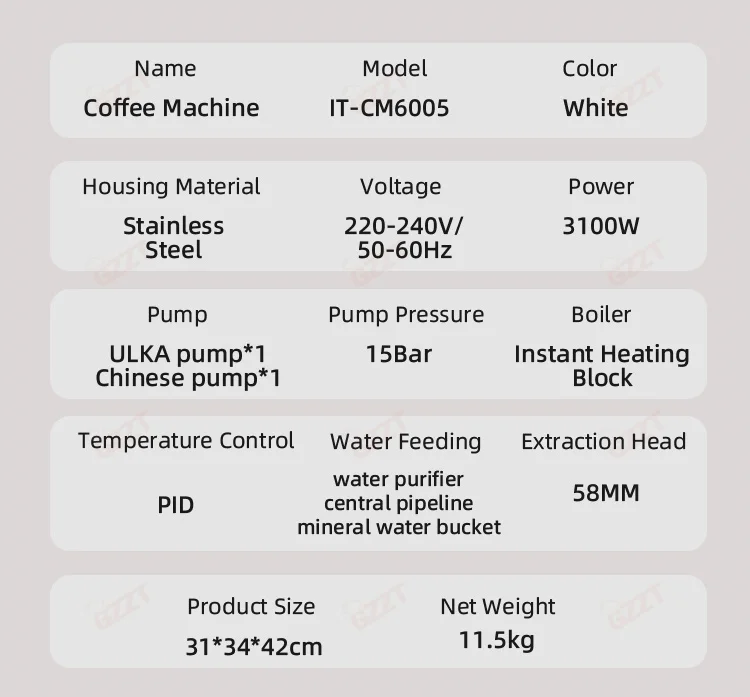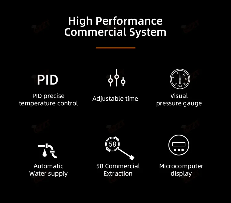 6. It is equipped with a commercial 58mm brewing head and a pre-infusion system.