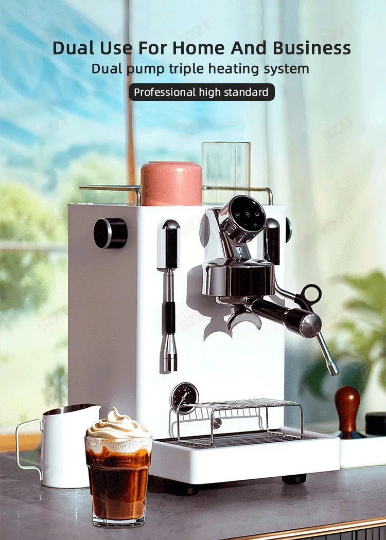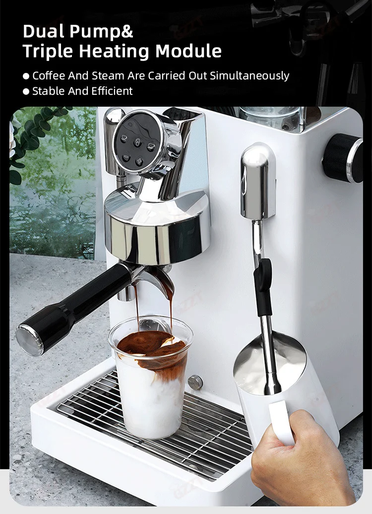 1. It has a double pump triple heating system. It makes coffee and produces steam at the same time, which is stable and efficient.