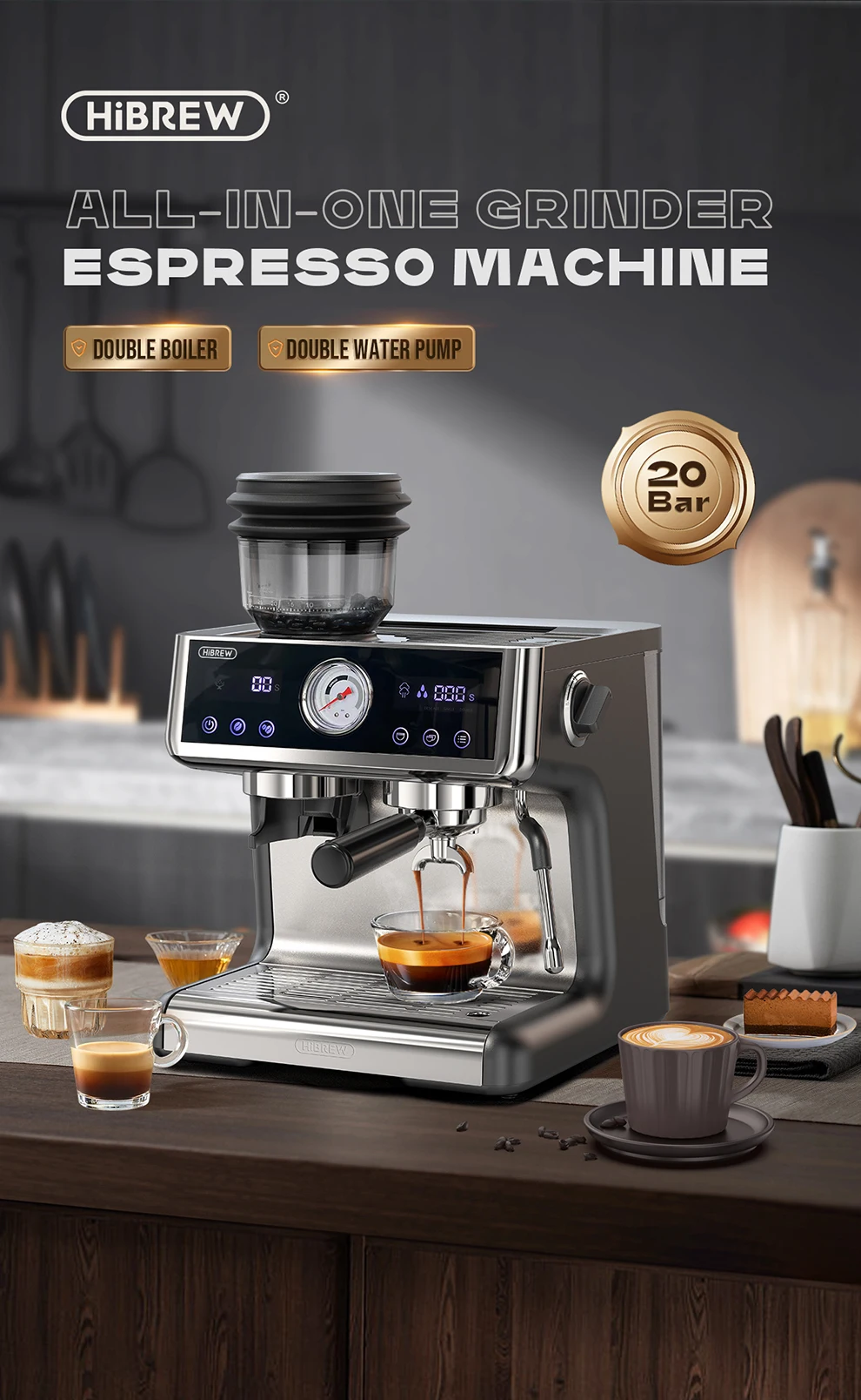 HiBREW Dual Boiler System Barista Pro 20Bar Bean to Espresso Cafetera Coffee Machine with Full Kit for Cafe Hotel Restaurant H7A
