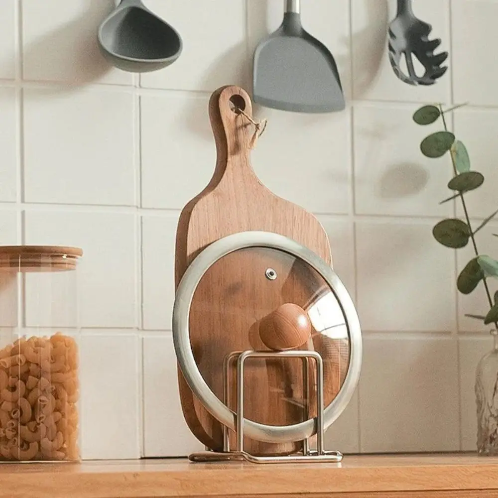 Portable Stainless Steel Cutting Board Holder Rustproof Space Saving Pot Lid Stand 2 Sectional Kitchen Storage Rack 1